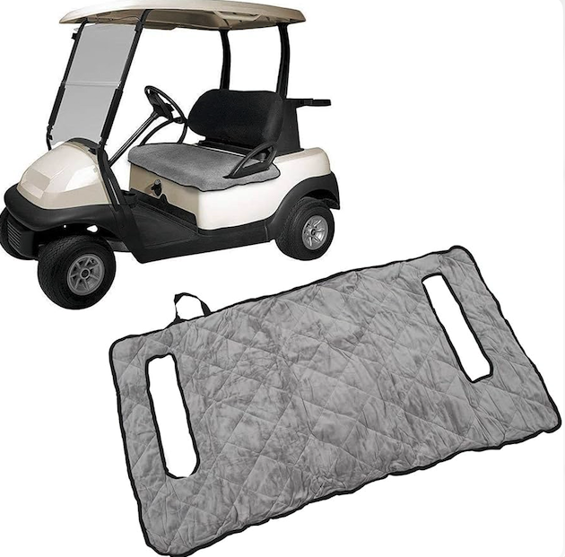 Premium waterproof khaki seat cover designed for all standard golf carts. Provides comfort, protects seats from dust, sun, and sweat. Easy slip-on installation.